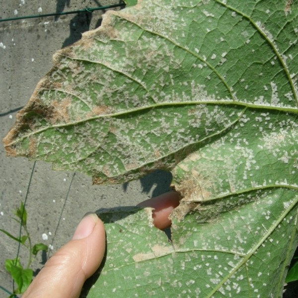 Begint de ziekte aan de onderkant van het blad? Dan heb je te maken met valse meeldauw. Dat is een andere, maar net zo vervelende, ziekte. Bij valse meeldauw vormt zich schimmelpluis aan de onderkant van het blad. Aan de bovenkant van het blad kunnen gele vlekken ontstaan die soms die soms bruin kleuren ontstaan.