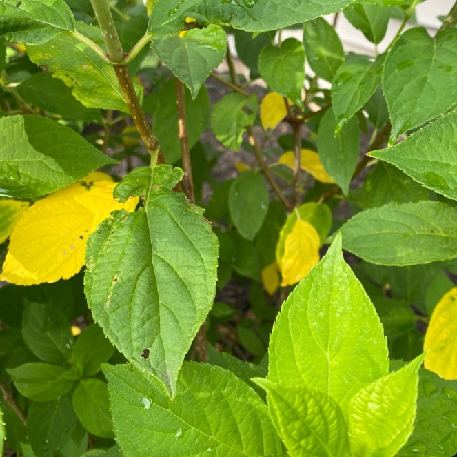 Gele bladeren bij een hortensia is vaak een gevolg van een tekort aan voedingsstoffen en/of water. Ook kan er teveel kalk in de grond zitten. Je kunt dit het beste verhelpen door de plant op de lange termijn voldoende en regelmatig water te geven. Ook kan je de hortensia bemesten met mest die ijzer en magnesium bevatten. Dit werkt echter voor korte duur.