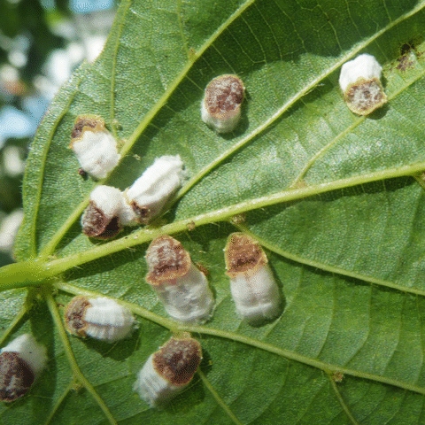 Een woldopluis is een schildluis, dat in mei en juni een spinsel kan achterlaten op een blad. Dit spinsel is wollig, wit van kleur en bevat eitjes. Uit deze eitjes komen nieuwe luizen die je hortensia kunnen aantasten. Deze zijn heel moeilijk te bestrijden. Het beste wat je kunt doen is in het beginstadium de bolletjes eruit knijpen. Ook kun je met de tuinslang de wolluis van de hortensia stam spuiten.