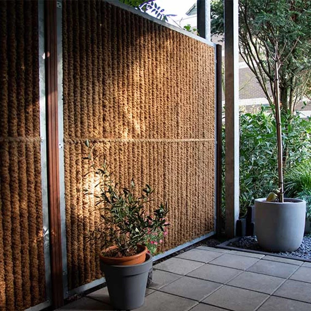 Bekijk het vlechtscherm kastanjeDit kokowall tuinscherm is gemaakt van gerecycled kunststof en natuurlijke duurzame kokosvezels. Als je de kokowall met klimplanten laat begroeien gaan de schermen 20 tot 30 jaar mee, dat is langer dan hardhout! Een zeer verantwoorde keuze dus.