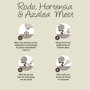Rhododendrons, hortensia’s en azalea’s zijn stuk voor stuk zuurminnende planten. Om deze planten goed te laten groeien en uitbundig te laten bloeien hebben ze behoefte aan een zuurminnende bodem met voldoende voedingsstoffen. Hortensia’s kunnen bij een niet voldoende zure grond zelfs zowel roze als blauw bloeien. Hoe hoger de zuurgraad van de grond, hoe intenser de blauwe kleur van de bloemen wordt. Deze mest heeft een 3-in-1 werking: voeding, bodemverbeteraar en plantversterker in 1 korrel.