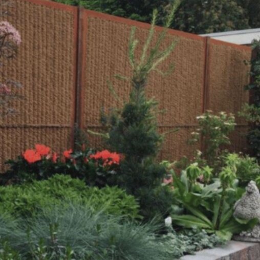 Tuinscherm Kokowall is gemaakt van kunststof buizen die omwikkeld zijn met duurzame kokosvezels. De natuurlijke en duurzame kokosvezels zijn afkomstig van de bast van kokosnoten. De kunststof buizen zijn gerecycled. Een zeer verantwoorde keuze dus! De buizen zijn vastgezet in een cortenstalen frame. Het tuinscherm biedt volledige privacy, zonder inkijk.