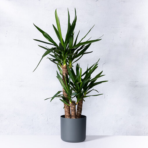 Wil je een exotische sfeer in je huiskamer? Kies dan voor de Yucca ‘Elephantipes’, ook wel Palmlelie genoemd. Deze driestammige kamerplant is een krachtige palmsoort en heeft een sterke uitstraling.